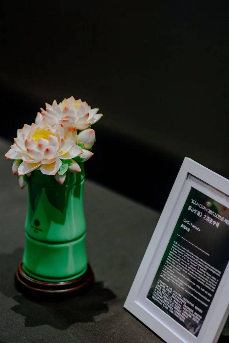 展厅内灯火辉煌,展台上一件件德化白瓷作品在柔和灯光的映照下熠熠生辉,玲珑剔透、温润如玉的质感让来宾们不时驻足欣赏。现场既有精巧的瓷雕人物,也有典雅的茶具摆设,每一件都透出千年瓷都的匠心神韵。在场的参观者们纷纷举起手机拍照留念,无不被德化白瓷的精美工艺和独特魅力所深深吸引。